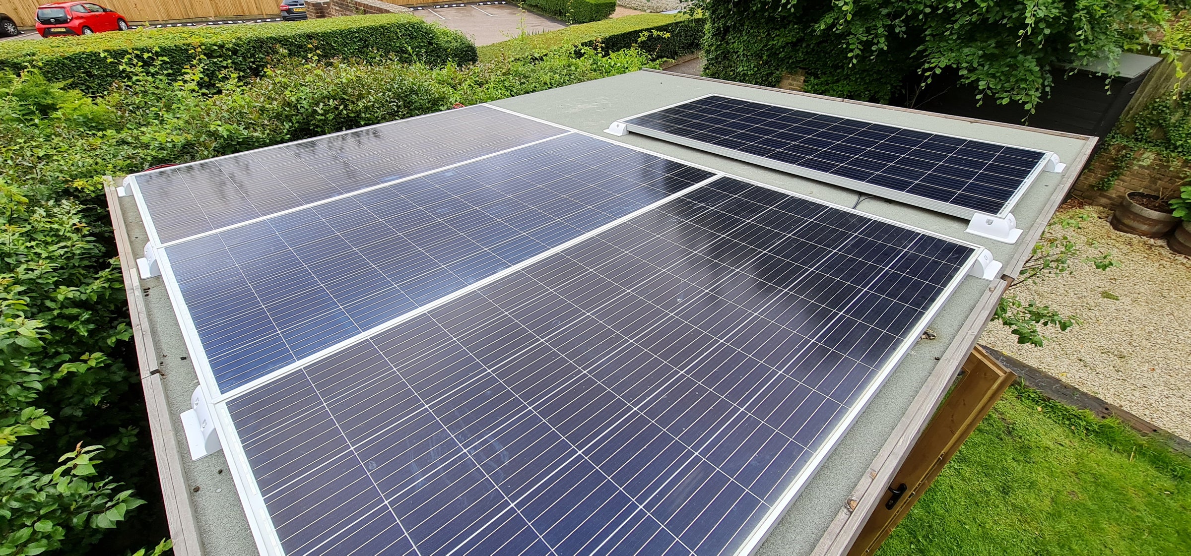 Solar panels can be fitted on a roof or mounted on the ground, we provide options for both. They need to face roughly south and be positioned to get sunlight all year around.